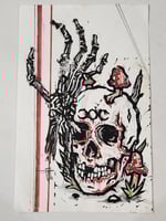 A lino cut print expanded upon with mixed media on paper. One of kind! Ready for your collection.